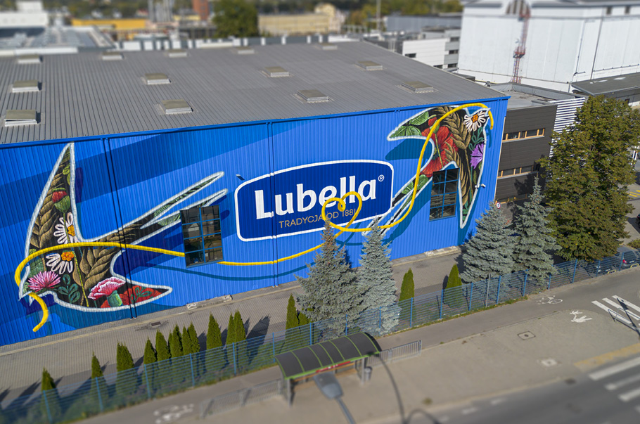 Grupa Maspex prezentuje kolejny wyjątkowy mural – tym razem o imponującej powierzchni 2200 mkw. – na zakładzie produkcyjnym Lubella w Lublinie.