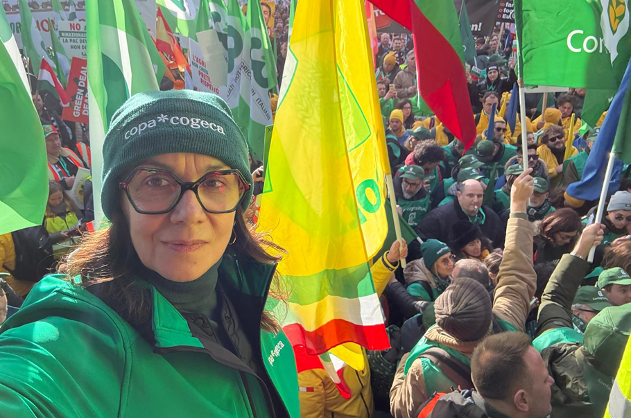 Nie prosimy o przywileje. Domagamy się uczciwych warunków. Rolnicy Europy są zjednoczeni. Kobiety rolniczki są zjednoczone. I nie odejdziemy, dopóki nasz głos nie zostanie wysłuchany. Dziękuję.”